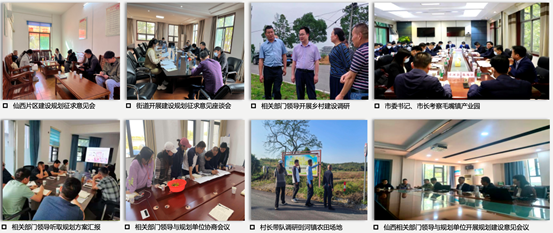 (二)实地实施:调研与设计一体推进在教师带领下,团队多次深入仙西片区,围绕产业、生态、空间与文化开展系统调研。通过实地踏勘、问卷访谈、座谈交流等方式,全面掌握现状、倾听各方诉求。基于扎实调研,团队组织多场规划与产业融合工作坊,邀请地方政府、企业及村民代表共同参与,将调研成果转化为具体的规划策略与实施路径,提出契合“一镇一品”发展思路的可行性方案。