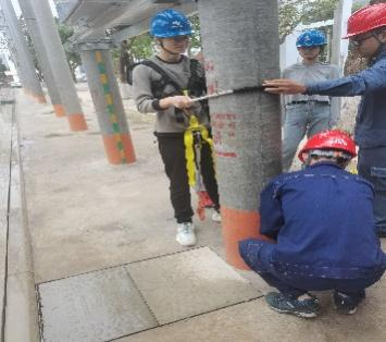 在南山局实习的同学们则深入学习了用电办理等客户端相关业务流程,前往城中村电力改造施工现场,了解项目改造工作流程和难点、痛点;在配网资产运维班组,同学们参加了配电房现场巡视,了解了目前深圳配网系统的运维工作内容和员工技能竞赛等内容。