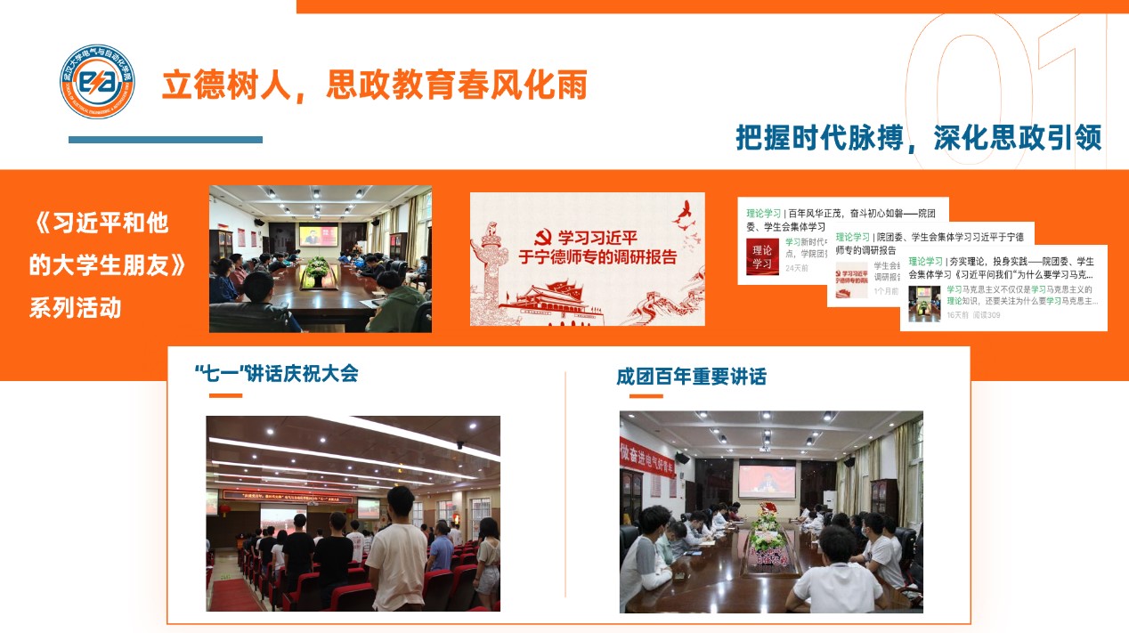 学院学生会立足青年视角,设立电气青年观察站,倾听学子心声;依托新媒体平台,树立朋辈榜样,高空巡线女飞人李嘉思被人民日报等顶流媒体转载、援巴基斯坦校友刘通书写用青春践行“请党放心,强国有我”的铮铮誓言。
