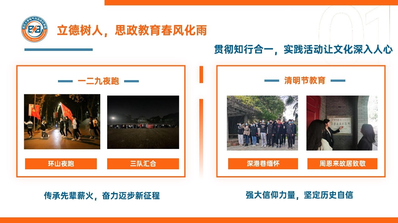 学院学生会贯彻知行合一,让红色文化深入人心。一二·九夜跑引导电气学子传承先辈薪火,奋力迈步新征程;清明节爱国主题教育活动强大信仰力量、坚定历史自信。