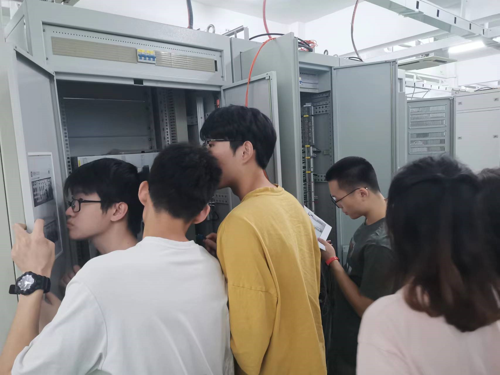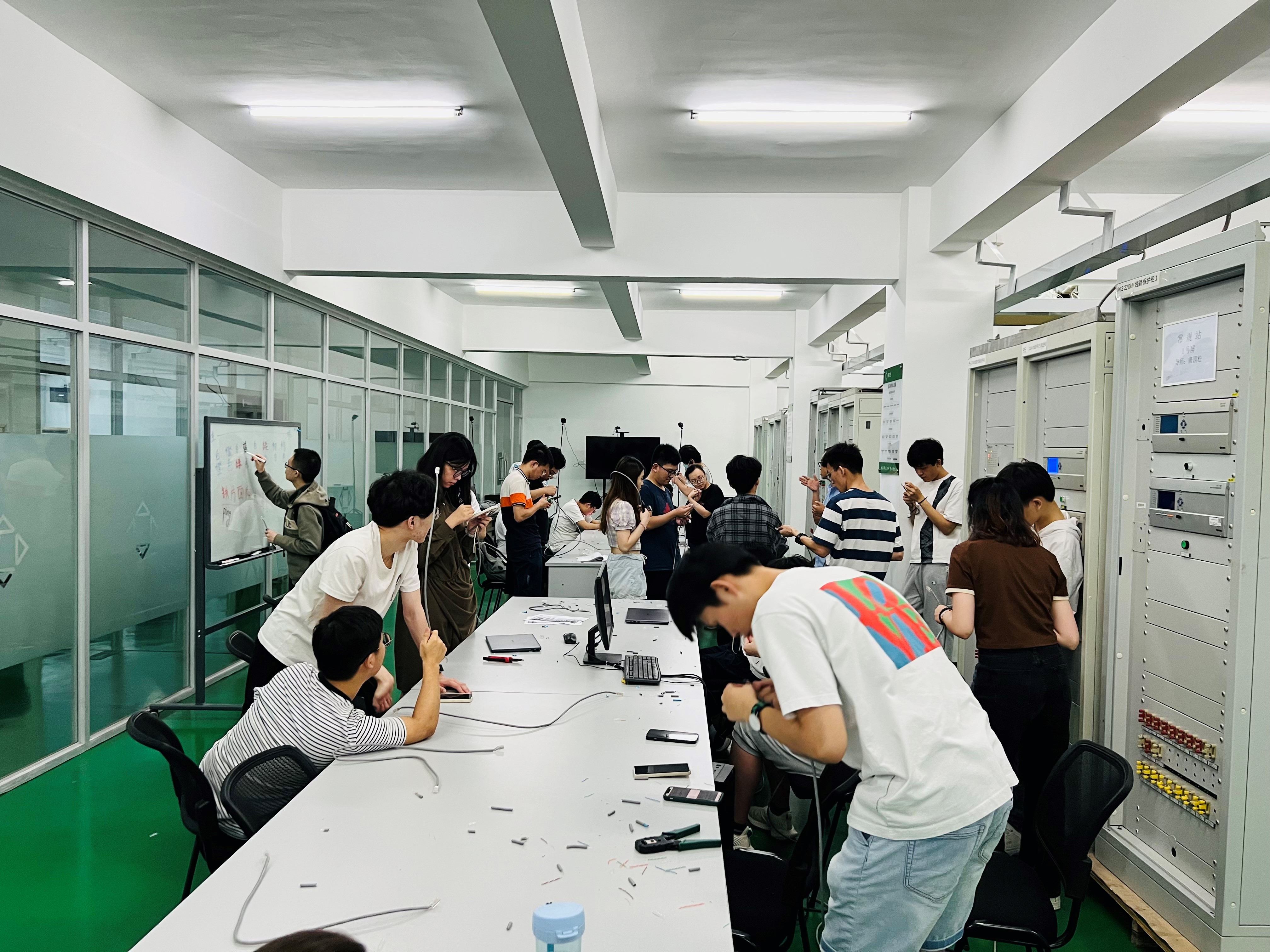 此次四方公司武汉培训基地与学院接洽后积极设计培训环节,力求将真实的现场环境呈现给大家。在课程安排上遵循了以下几点特色,一是理论知识讲解紧紧联系现场和当前新技术的应用。理论课堂着重给同学们讲解了目前国内主流智能变电站网络结构以及不同电压等级变电站二次设备配置原则;带领同学们学习常规变电站与智能站的异同,结合现场实际工程项目认识监控系统......理论课程不离现场应用,不离课本基础知识。