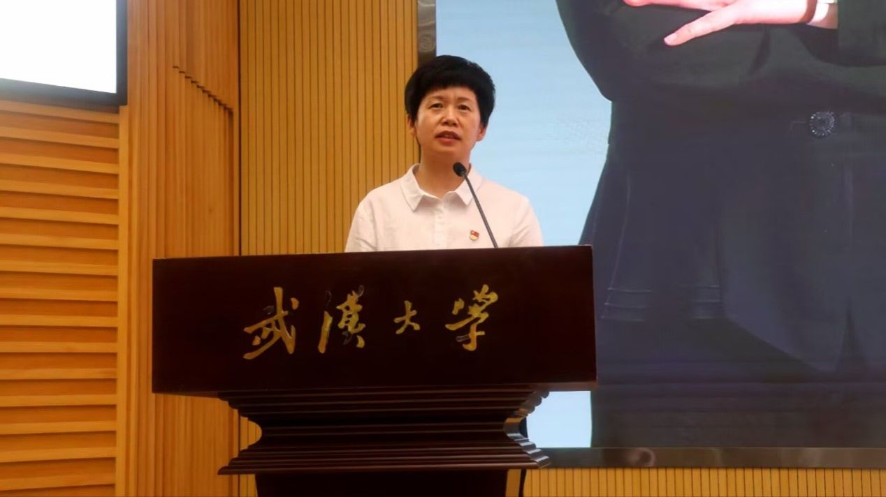 2023级新生代表毛甜发言。她阐述了作为一名珞珈山新主人的所见所闻所思,并向同学们发出倡议:希望同学们秉持校训精神,耐得住打磨,禁得住寂寞,脚踏实地,学有所成。