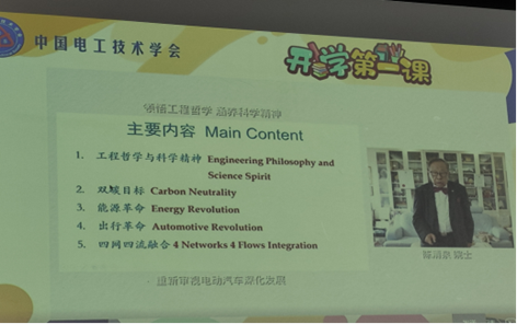 “电气工程是什么?”“如何领悟科学精神与工程哲学?”时值全国科普日期间,9月23日下午,学院2023级本科生代表于工学部主教A410教室集中观看中国电工技术学会“开学第一课”线上科普公益讲座。本次线上科普公益活动邀请了9位电气工程领域的院士、专家、老师和学生普及电气工程领域的专业知识,共同学习科学精神与工程哲学,帮助大一新生们发现电气之美、体验电气之荣光、畅想电气之未来。此次活动,共有全国300家开设电气工程及相关专业的高校、数万名电气新生在线观看。