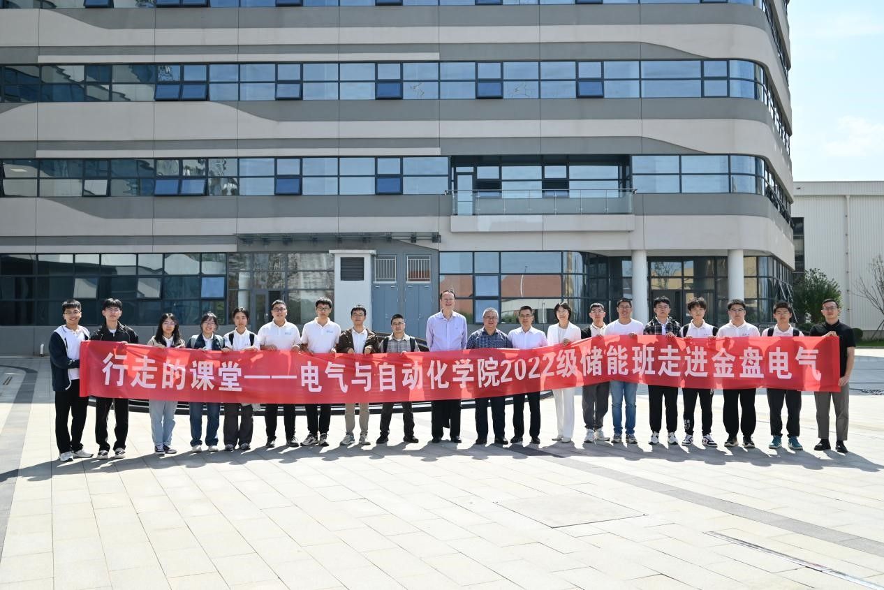 的董旭柱院长走访校友企业金盘电气集团武汉市金盘科技产业园。学院院长助理龚庆武教授、副研究员蒯春光老师及本科2022级学生代表一同前往。