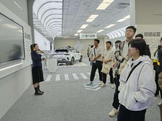 步入极具科技感的展厅,讲解员为学生们介绍了百度萝卜快跑的发展理念——“用科技让复杂的世界更简单”,展示了十年间自动驾驶技术的飞速发展与武汉市内初具规模的自动车网络。同学们在绘声绘色的讲解下了解了我国自动驾驶技术的巨大成就,体会到科技发展将会对未来带来的巨大改变,也对未来的职业道路产生了更多憧憬。