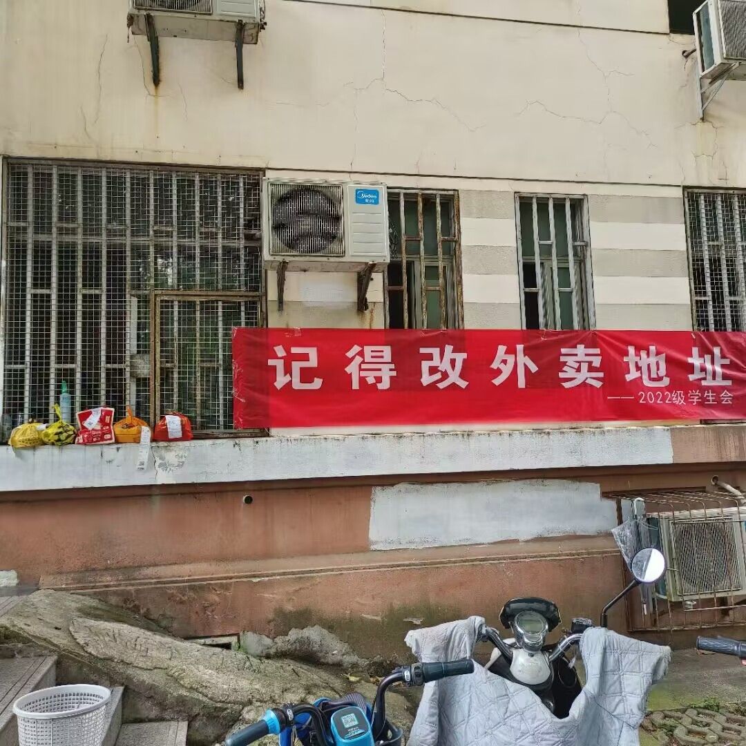 在学院的组织下,“遇见你我的心自动化了”、“记得改外卖地址”、“青春无悔在电气”——映入眼帘的是2022级团总支学生会为同学们准备的暖心的横幅。