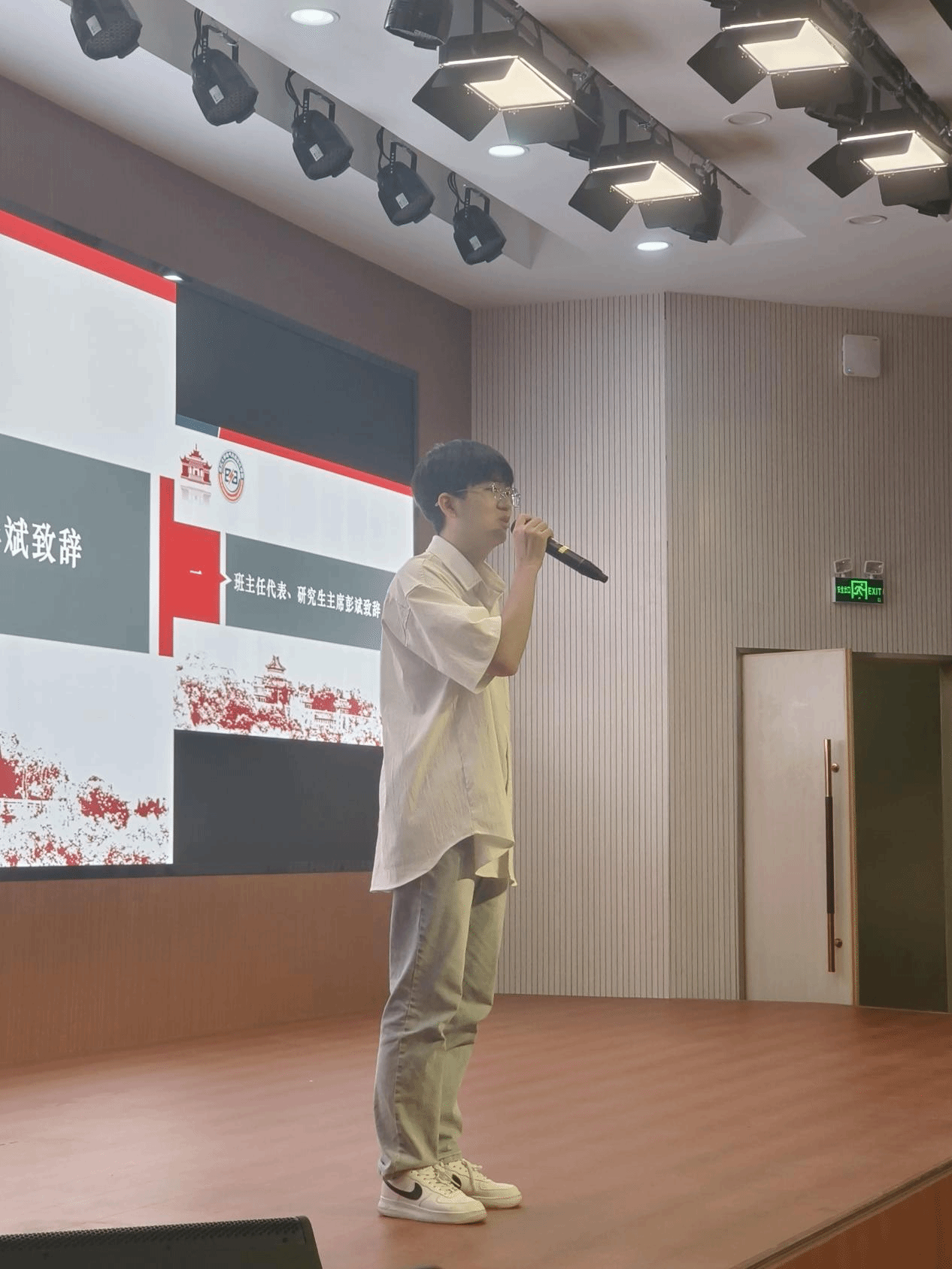 活动伊始,主持人对大家进行欢迎,对参会嘉宾进行简单介绍后,首先由班主任助理代表、研究生会主席彭斌致辞,通过几个小故事的分享,让大家对电气的生活和工作有了一个简单的了解,也对未来的生活更加有信心。