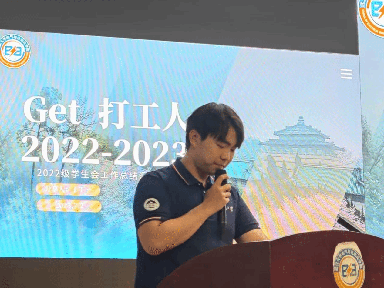 主题分享后,2022级学生会主席于丁一做级会工作总结汇报,通过对一年来级会工作的梳理和总价,让大家看到了级会工作的背后,所有充分的准备、一次次的修改等等。