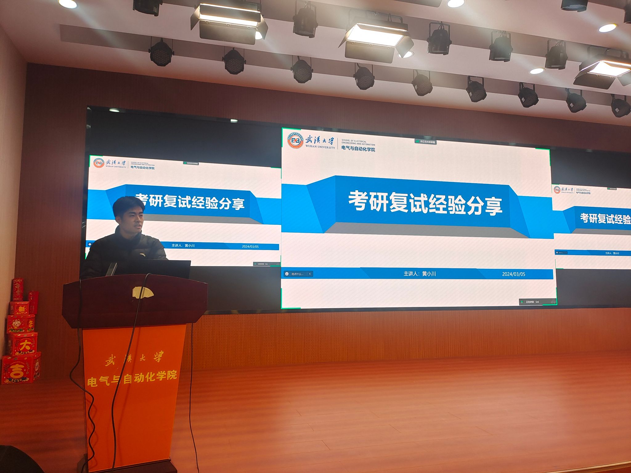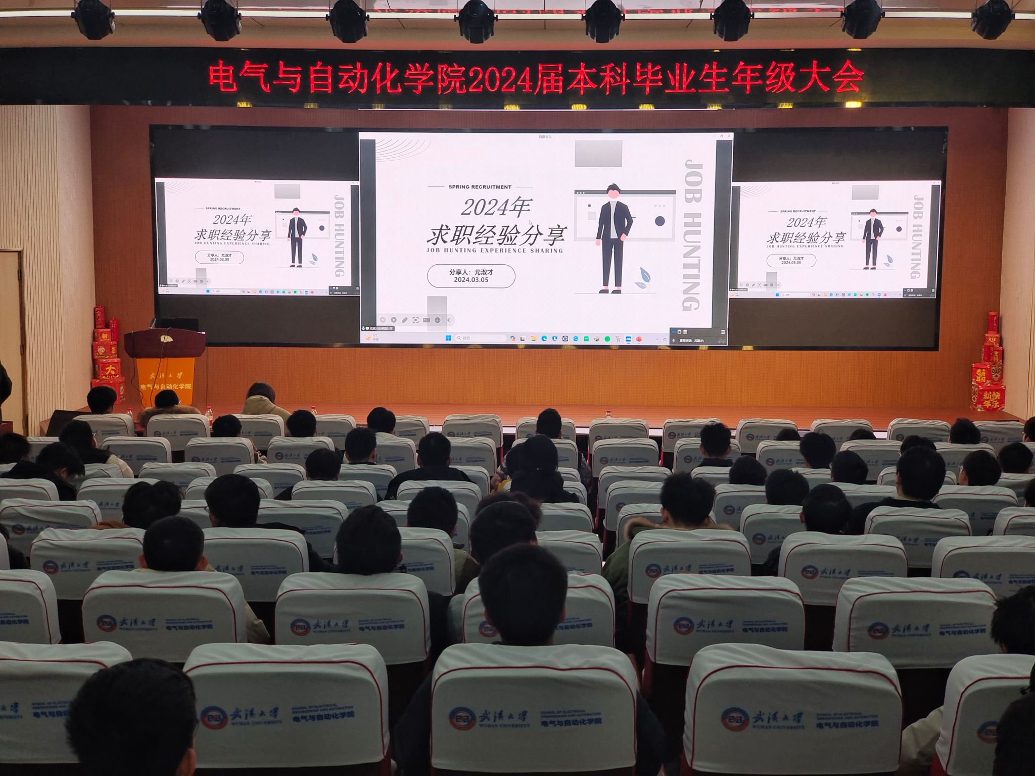 2024届毕业生年级大会暨考研复试、春招就业经验分享会在电气学院报告厅召开,20级辅导员张晗老师、周兵奇老师,兼职辅导员梁美欣与会,并邀请黄小川、尤淑才两位学长为大家进行经验分享。2020级全体同学通过线上线下相结合的方式参加会议。