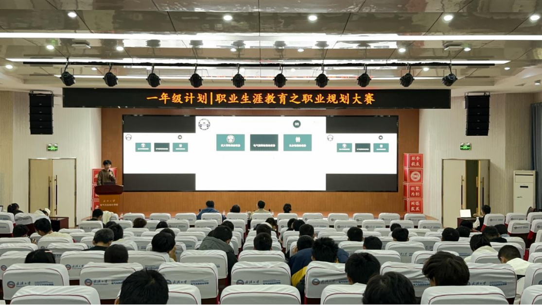 大学生职业规划大赛2024级年级赛在学院报告厅隆重举行。本次赛事由学院本科2024级年级学生会主办,由2024级班主任宫金武老师,2024级本科生辅导员赵薇老师、周兵奇老师,兼职辅导员何湘凌老师担任评委,由2024级本科生丁睿阳主持,2024级部分本科生参与观看比赛。本次比赛赛程紧凑,参赛选手各具风采,展现了电气青年有梦敢闯有担当的精神风貌。职业早规划,目标早确立,我们在路上!