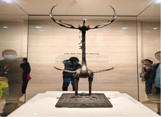 首先映入同学们眼帘的是荆楚文化展厅。此展厅宛如一幅绚烂的历史长卷,缓缓铺陈出湖北地区别具一格的地域文化风貌。从神秘莫测的楚地巫术信仰,到特色鲜明的楚式青铜器;从浪漫肆意的楚地文学,到精巧绝伦的楚绣艺术,荆楚文化的独特魅力展露无遗。那些造型诡谲、纹饰华美的青铜器,如虎座飞鸟、鹿角立鹤之类,尽显楚人天马行空的想象力以及对自然神灵的尊崇。透过这些文物,同学们仿佛能窥视那个时代的繁华盛景,感受到楚文化所代表的独特审美意趣,亦深刻体会到中华文化的多元与丰厚。同学们从这些承载历史沧桑的文物中,体悟到先辈们栉风沐雨,以智慧和汗水缔造伟大文明的艰辛,不禁心怀敬畏与自豪。