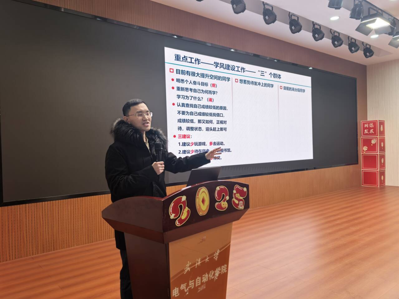 本次年级大会以2024级大一上学期学业情况分析作为切入点,对大家上学期的表现给予了肯定,同时也指出了同学们学习、生活中存在的问题和不足;通过分析往届的毕业生情况,让大家能够展望未来,规划适合自己的发展道路;通过分类指导,激发大家的学习动力。相信在新学期,同学们能够继续前进,创造更优异的成绩。