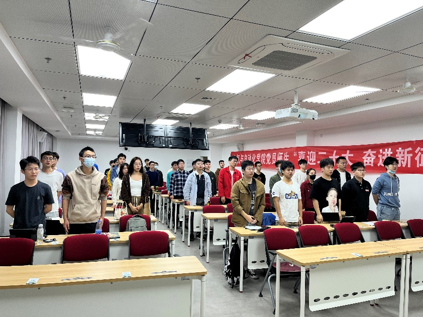 学生党员跟随二十大开幕会直播齐唱国歌