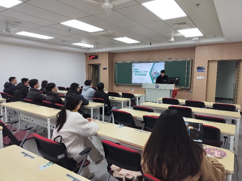 会议开始,团支书郑智超分析解读了党的二十大精神,强调了“坚持和加强党的全面领导”“坚持中国特色社会主义道路”“坚持以人民为中心的发展思想”“坚持深化改革开放”“坚持发扬斗争精神”的重大原则,使同学们深刻认识到二十大会议的重要意义。我国正处于社会主义发展的重要阶段,郑智超从外部环境和内部环境两方面分析,使同学们认识到我国当前面临的重要机遇和挑战,号召同学们不断强化自身能力,学好本领,积极筹备投入到祖国的社会主义建设中来,同时也要加强思想精神学习,提升精神境界。