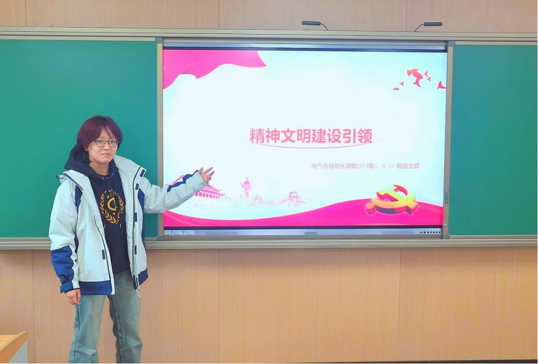 活动伊始,三班团支部书记蒋翊帆同学带领大家进行了深入的理论学习。她首先回顾了习近平总书记关于社会主义精神文明建设的一系列重要论述,引导广大团员青年深刻领会精神文明建设的内涵与要求。随后,蒋翊帆同学号召支部青年以全国精神文明建设先进代表黄旭华、黄大发等人为榜样,并向同学们讲述了先进代表们的光辉事迹。她鼓励同学们要牢记习近平总书记的嘱托,坚定理想信念,筑牢精神之基,以实际行动践行社会主义核心价值观,为凝聚人心、铸就民族精神之魂贡献青春力量。同学们被先进代表们的精神所感动,表示要争做有理想、有道德、有文化、有纪律的时代新人。