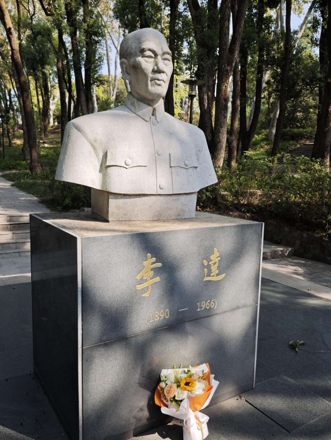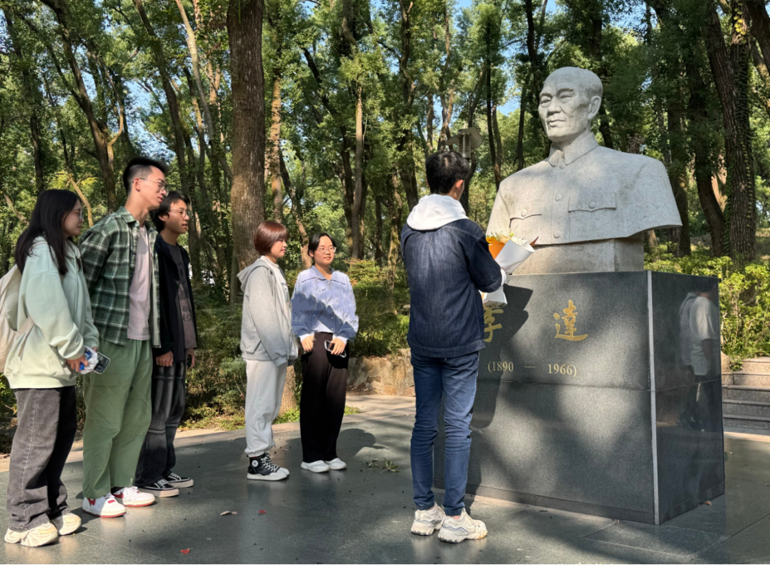 今天班级团日活动我们先去李达像前献花,李达先生为武大的发展、为国家的教育事业和思想理论建设做出了卓越贡献。献花之时,敬意在我心中油然而生,我明白作为新时代青年,应肩负起先辈们的理想,为祖国的未来砥砺前行,让珞珈精神在我们身上延续、发光。