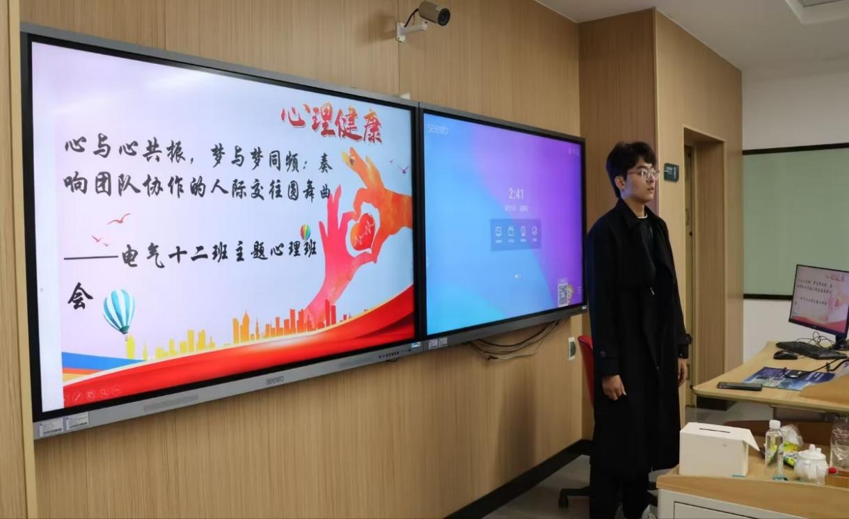 2024级电气12班在工学部第一教学楼A110教室开展“心与心共振,梦与梦同频”主题心理班会,开启了一场放松身心的心灵交流之旅。